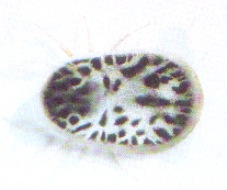 0,3-0,4 mm nagyságú, szabad szemmel alig látható pókidomú.