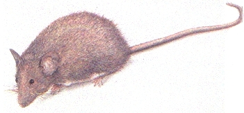 a házi egér 80-100 mm hosszú, sárgás-szürkés-fekete, farka testhosszával megegyező,